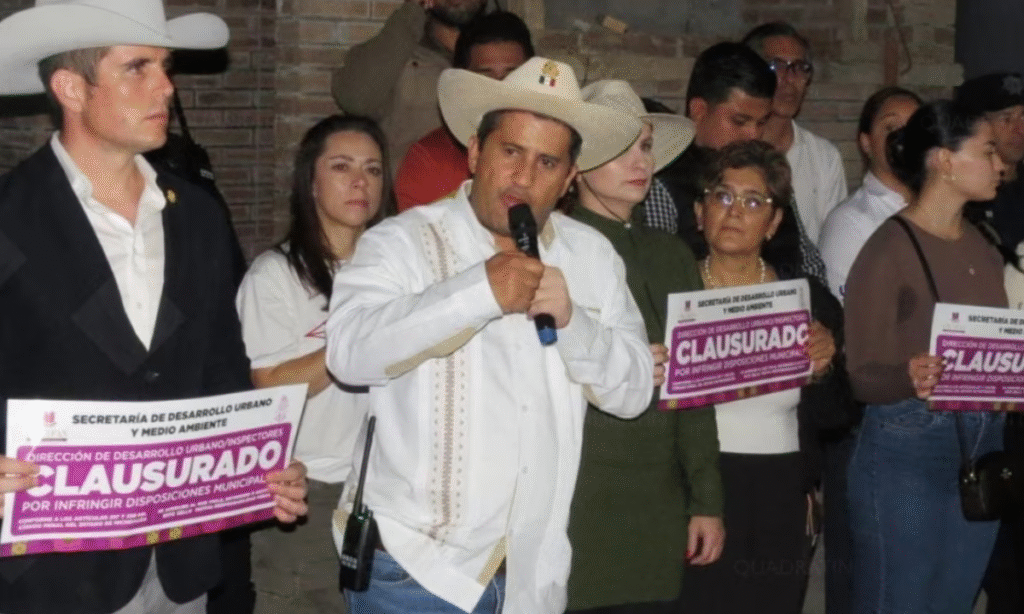Uruapan, Michoacán.– El presidente municipal de Uruapan, Carlos Alberto Manzo Rodríguez, clausuró la obra de construcción del teleférico en la estación número 3, ubicada sobre el Bulevar Industrial, para exigir acciones inmediatas contra la inseguridad en el municipio.